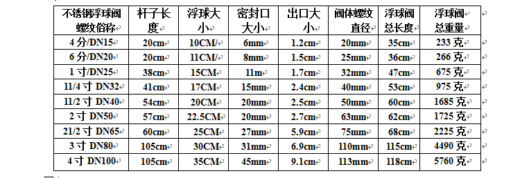 (2)不銹鋼浮球閥在杠長(zhǎng)度大小、球直徑大小根據(jù)浮球壓力大小而決定。