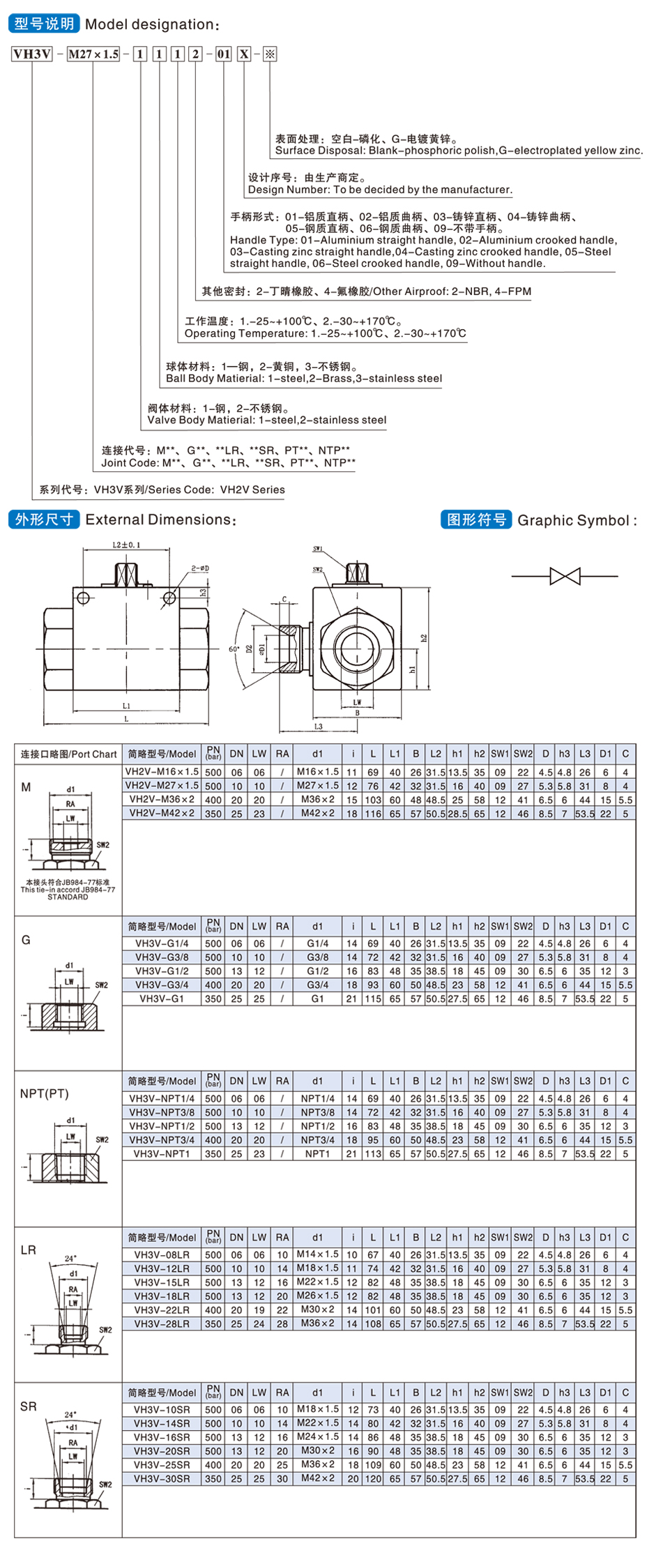 ② 連接代號:M** 、G** 、 **LR 、**SR、PT**、NPT**
